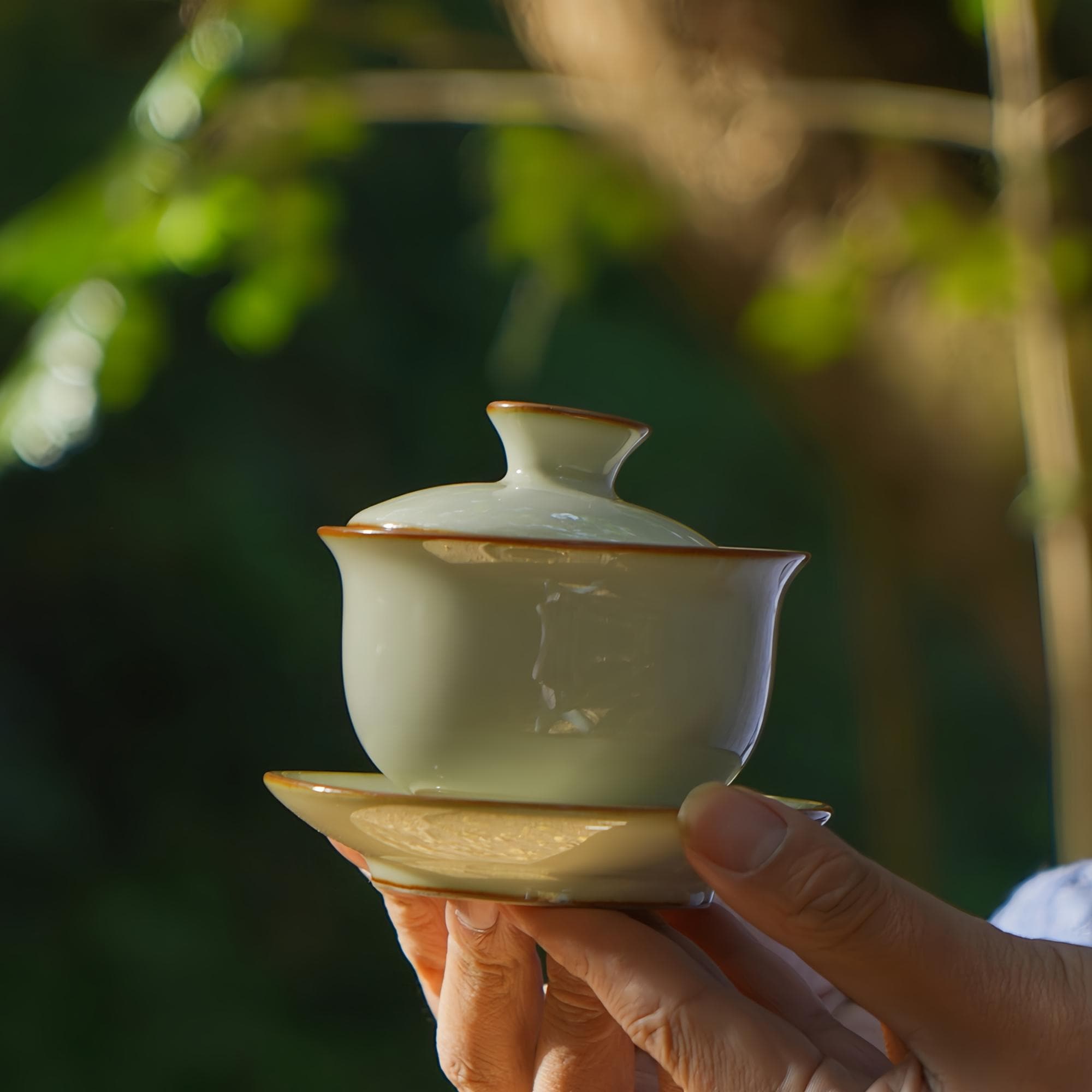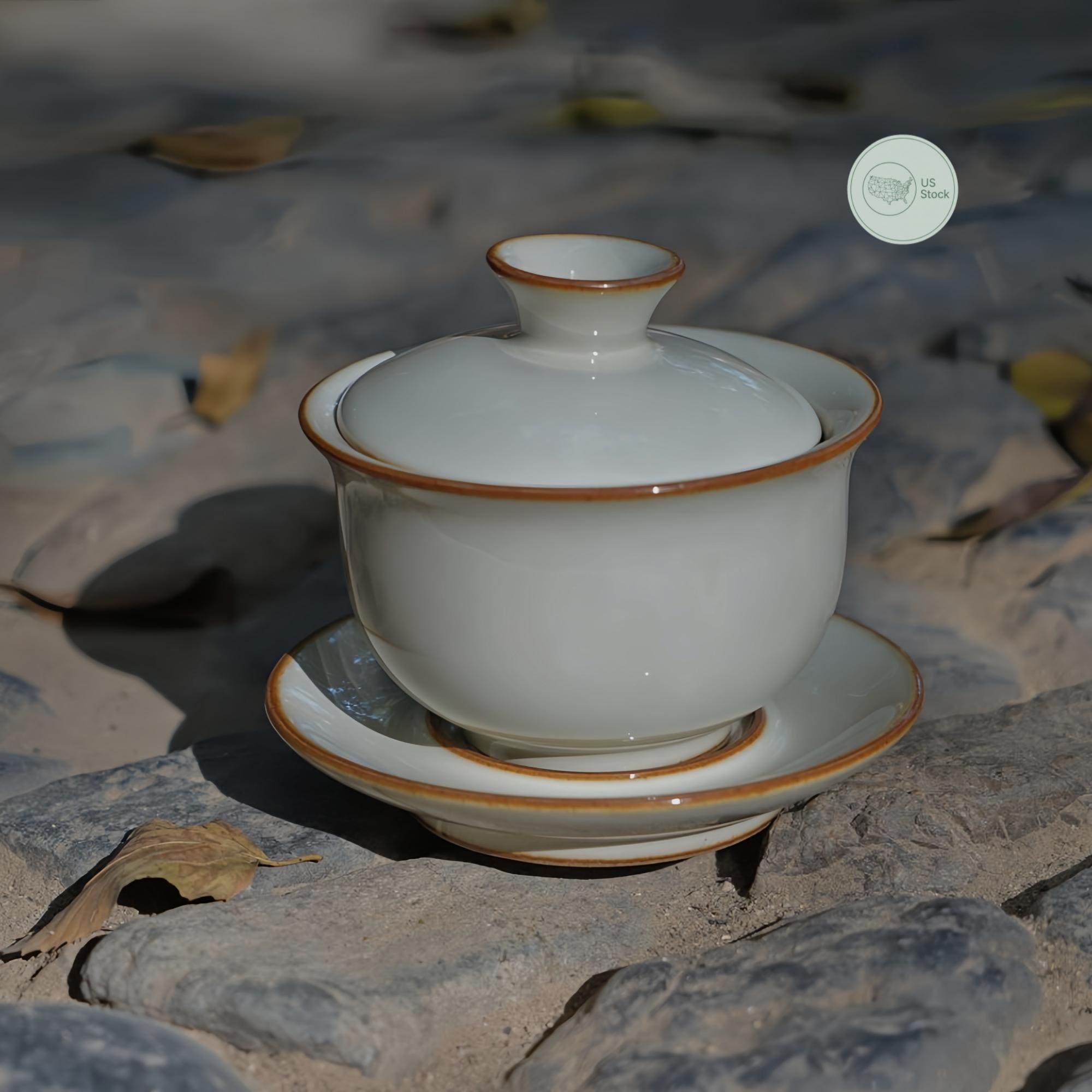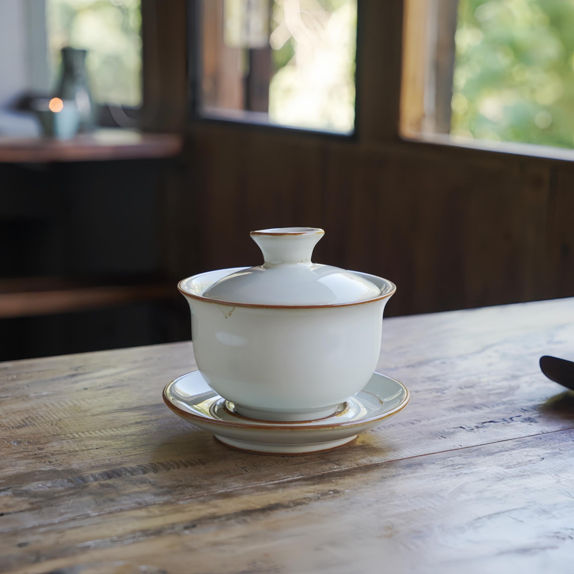Ivory Porcelain Gaiwan Set (Lid + Cup + Saucer) for Gongfu Tea