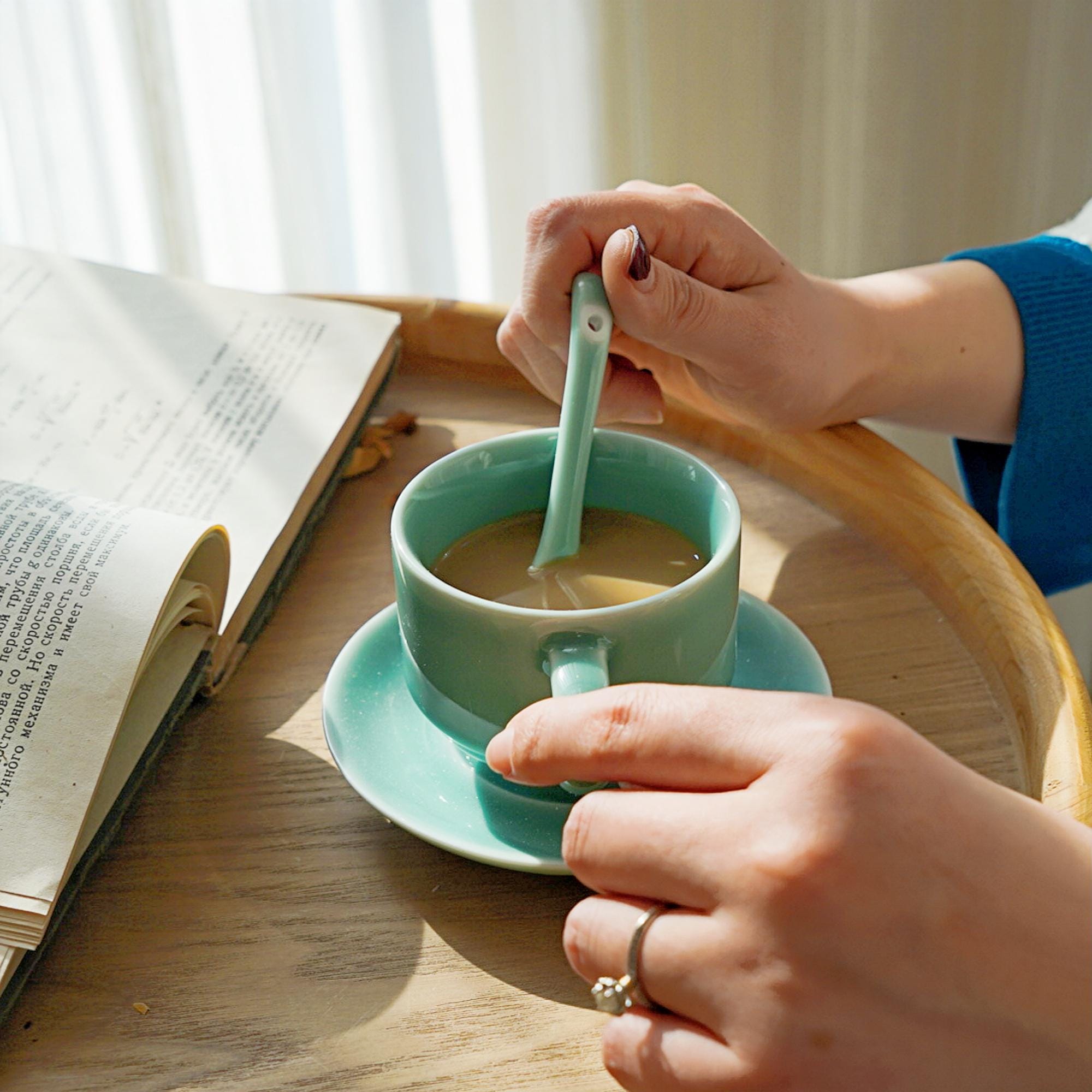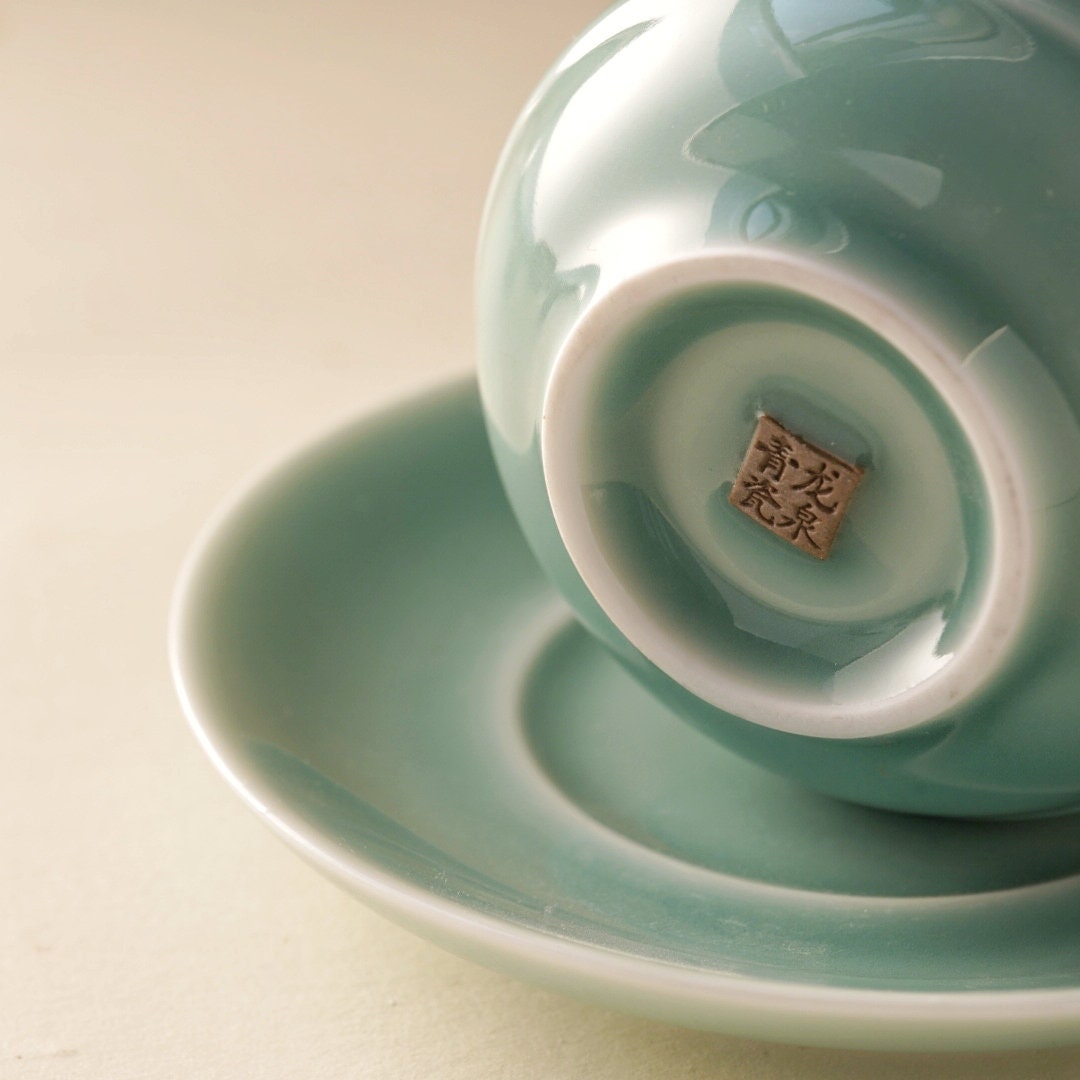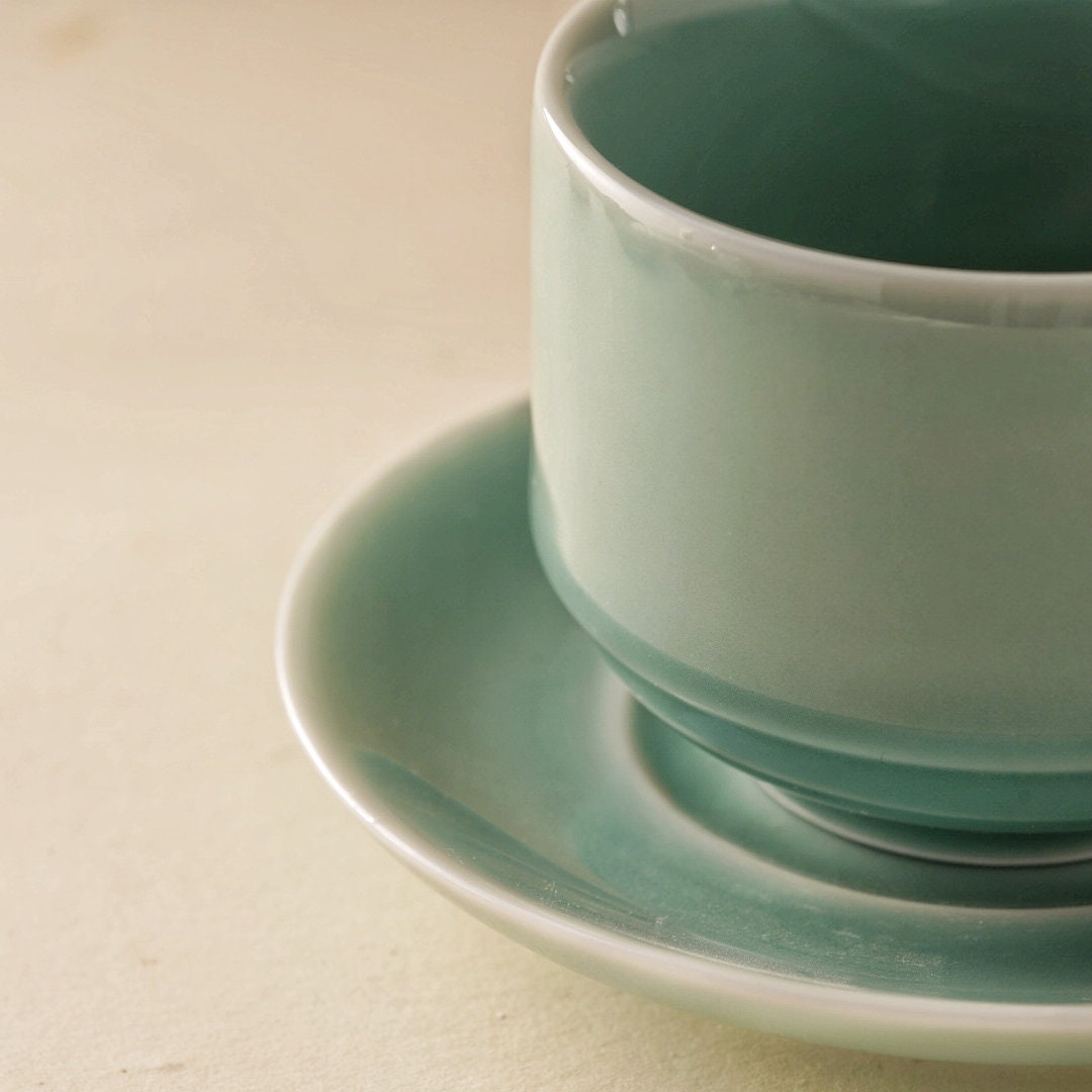 Bring calm and clarity to your daily ritual with this handmade 4oz green ceramic cup, saucer, and spoon set. Crafted with traditional Longquan celadon techniques, the soft blue-green glaze radiates serenity — an invitation to pause and savor the moment.