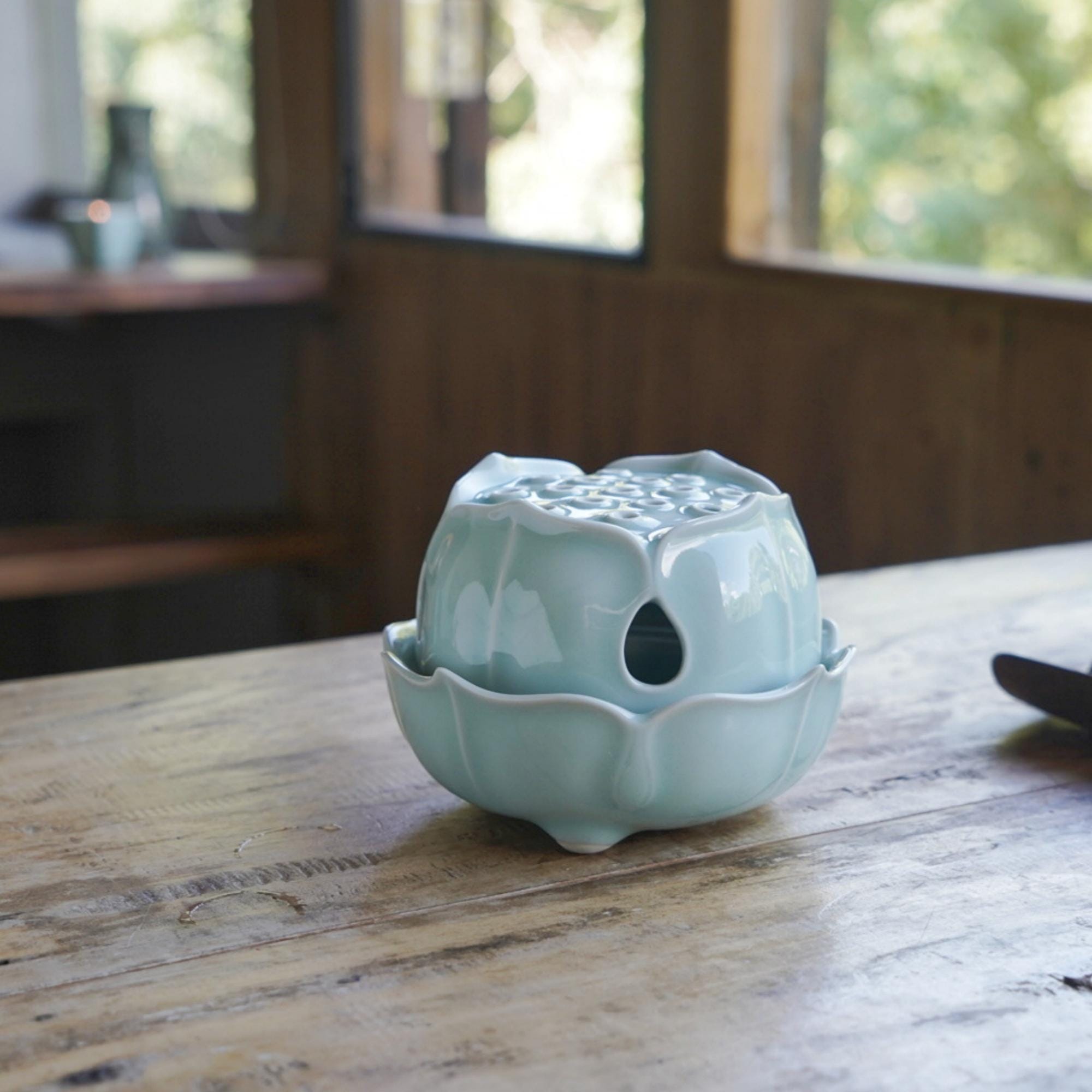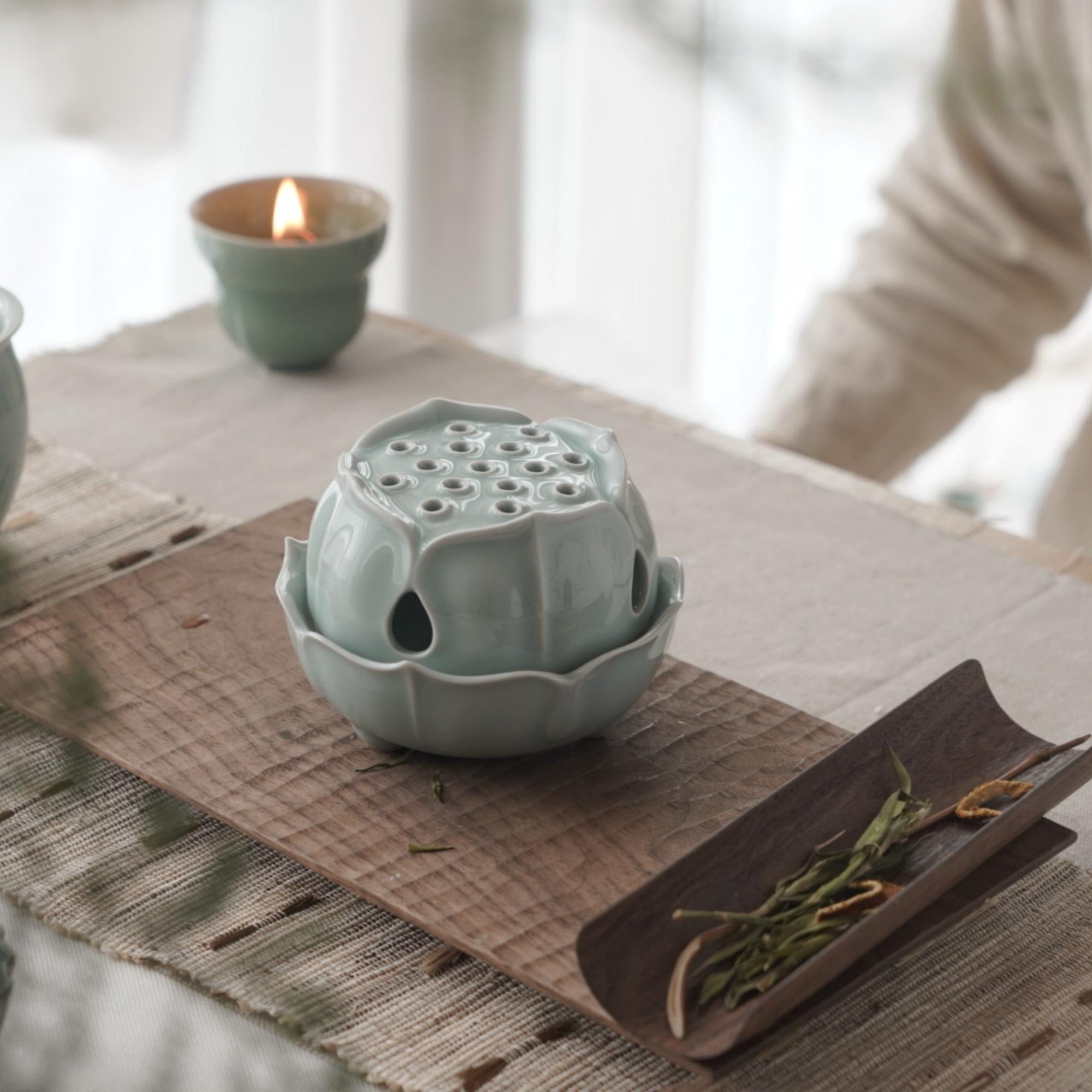 Bring calm and harmony into your home with this handcrafted lotus incense burner, made in Longquan, the birthplace of celadon β€” a UNESCO-recognized ceramic heritage. Shaped like a blooming lotus and glazed in soft jade-green celadon, it serves as both a functional incense holder and a spiritual accent for meditation spaces.