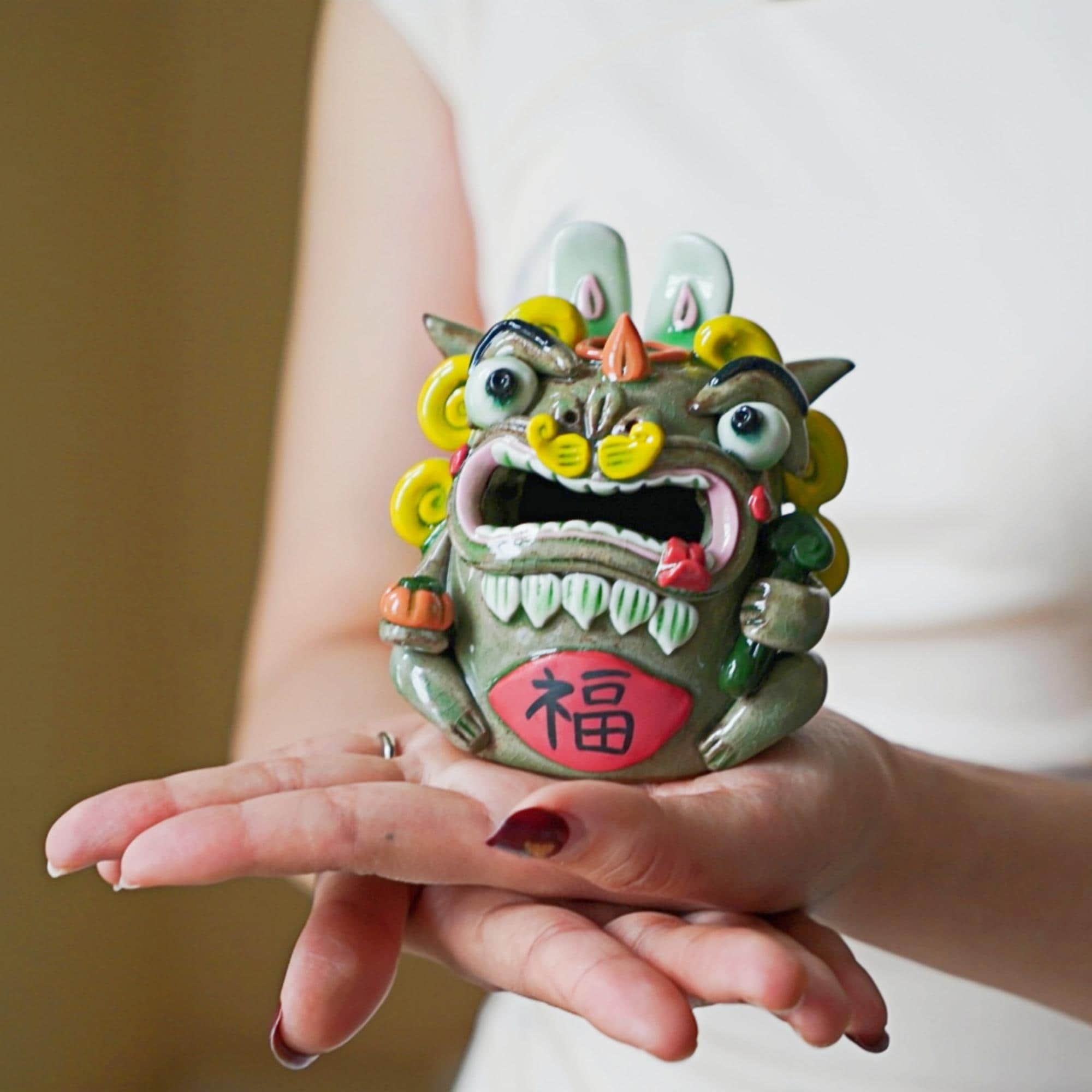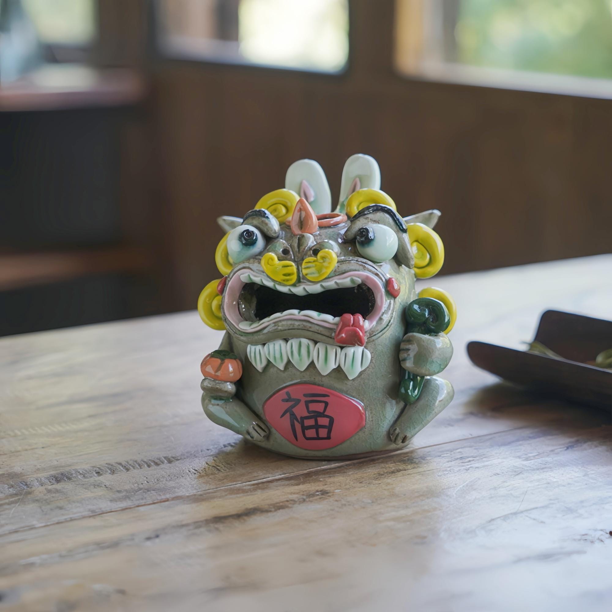 Bring harmony and charm to your space with this handcrafted ceramic Fu Beast incense burner.