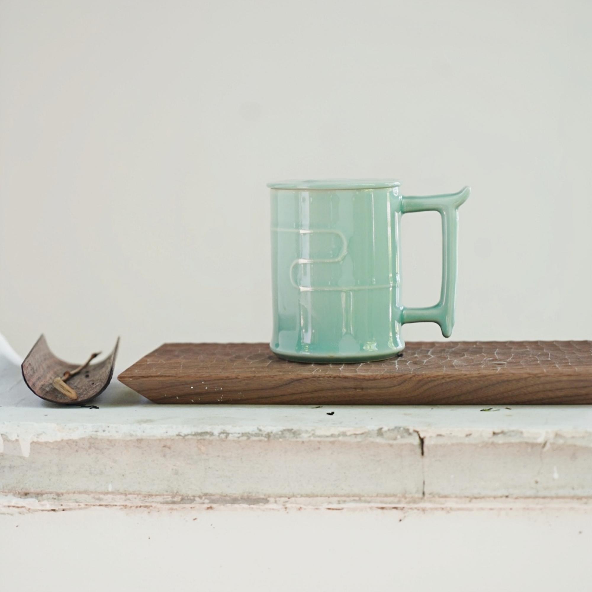 Each piece is kiln-fired at high temperatures to achieve the signature translucent jade-green glaze, a hallmark of authentic Longquan Celadon pottery. The unique minimalist yet artistic style makes this mug a perfect companion for your tea, coffee, matcha, or any hot beverage.