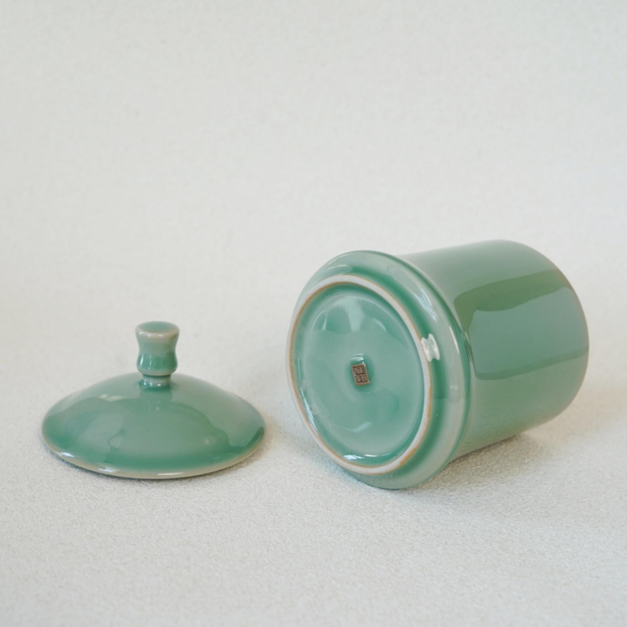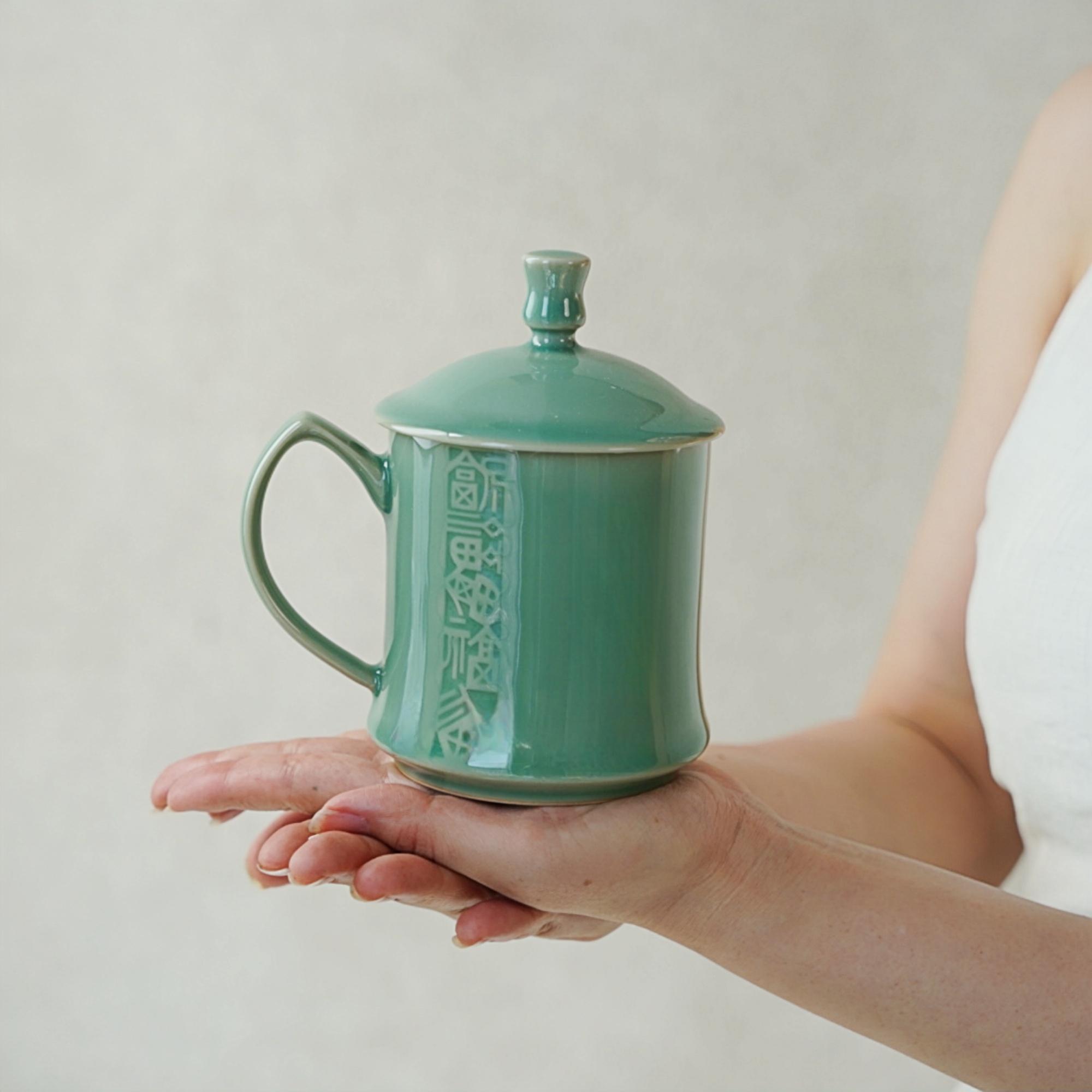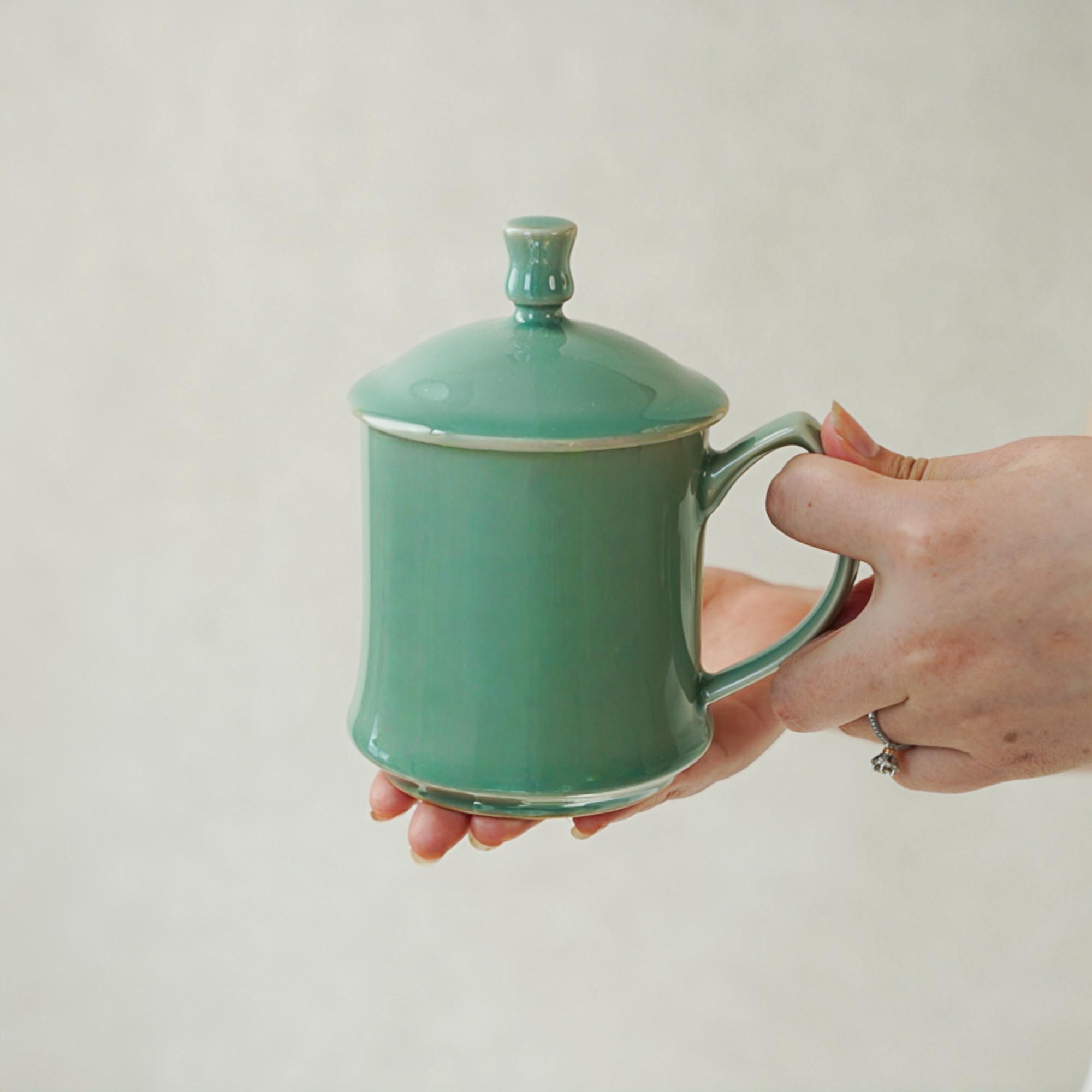 Longquan Celadon Tea Mug with Lid: Handmade Chinese Porcelain