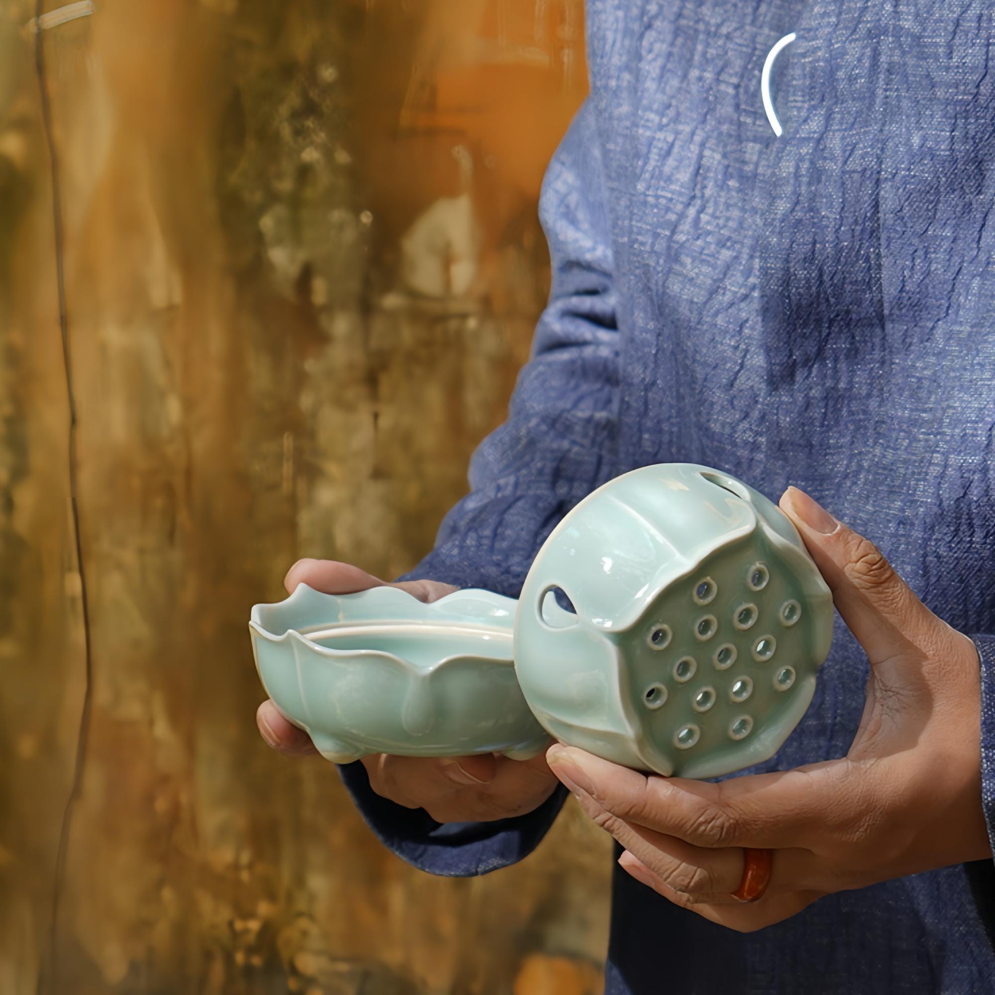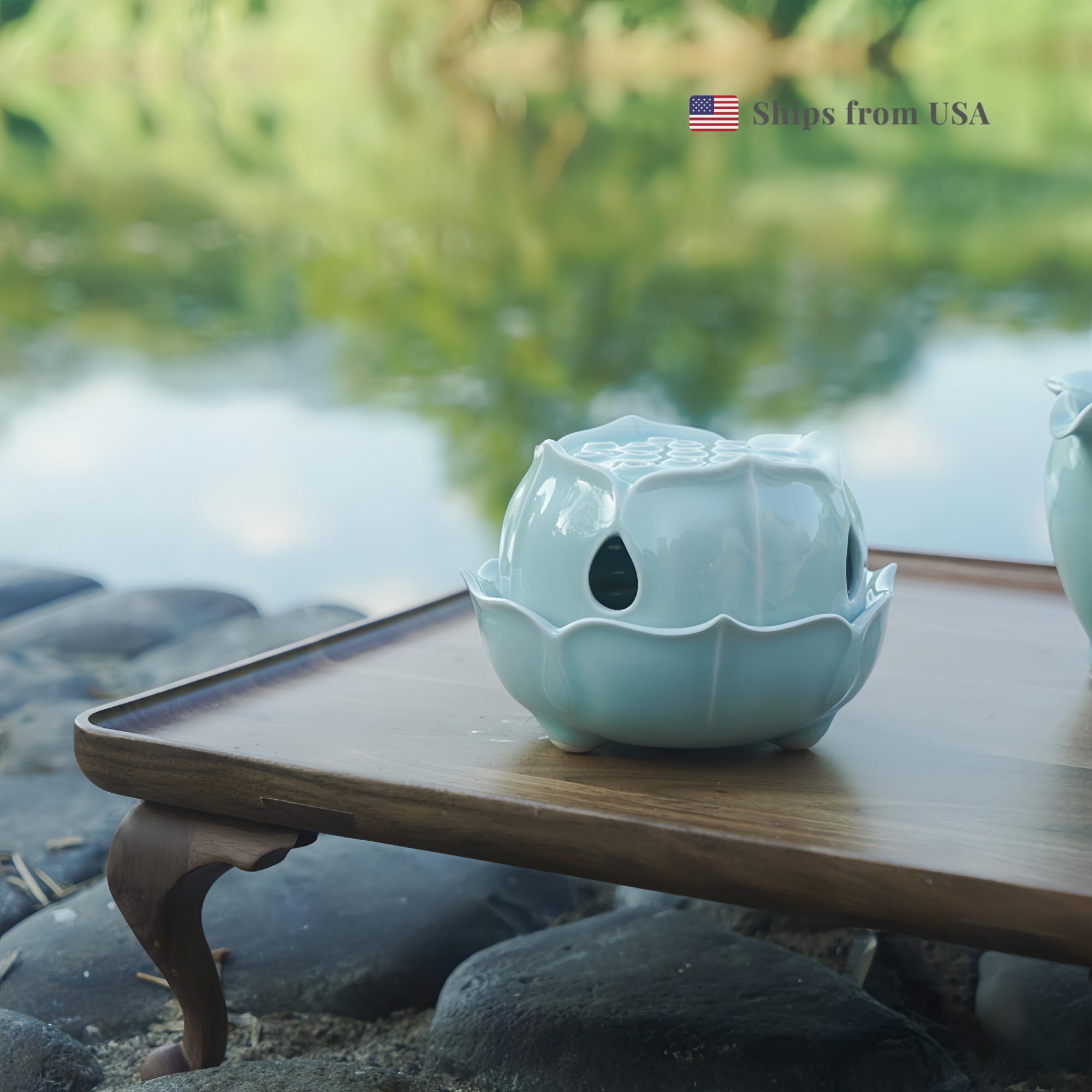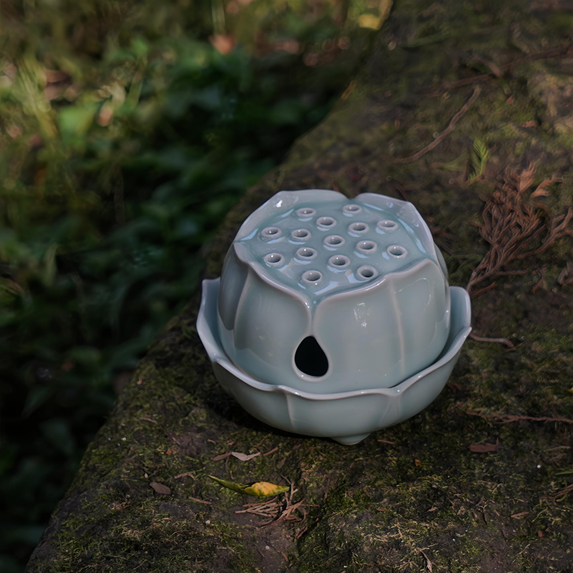 Lotus Incense Burner,Celadon Ceramic Meditation Gift