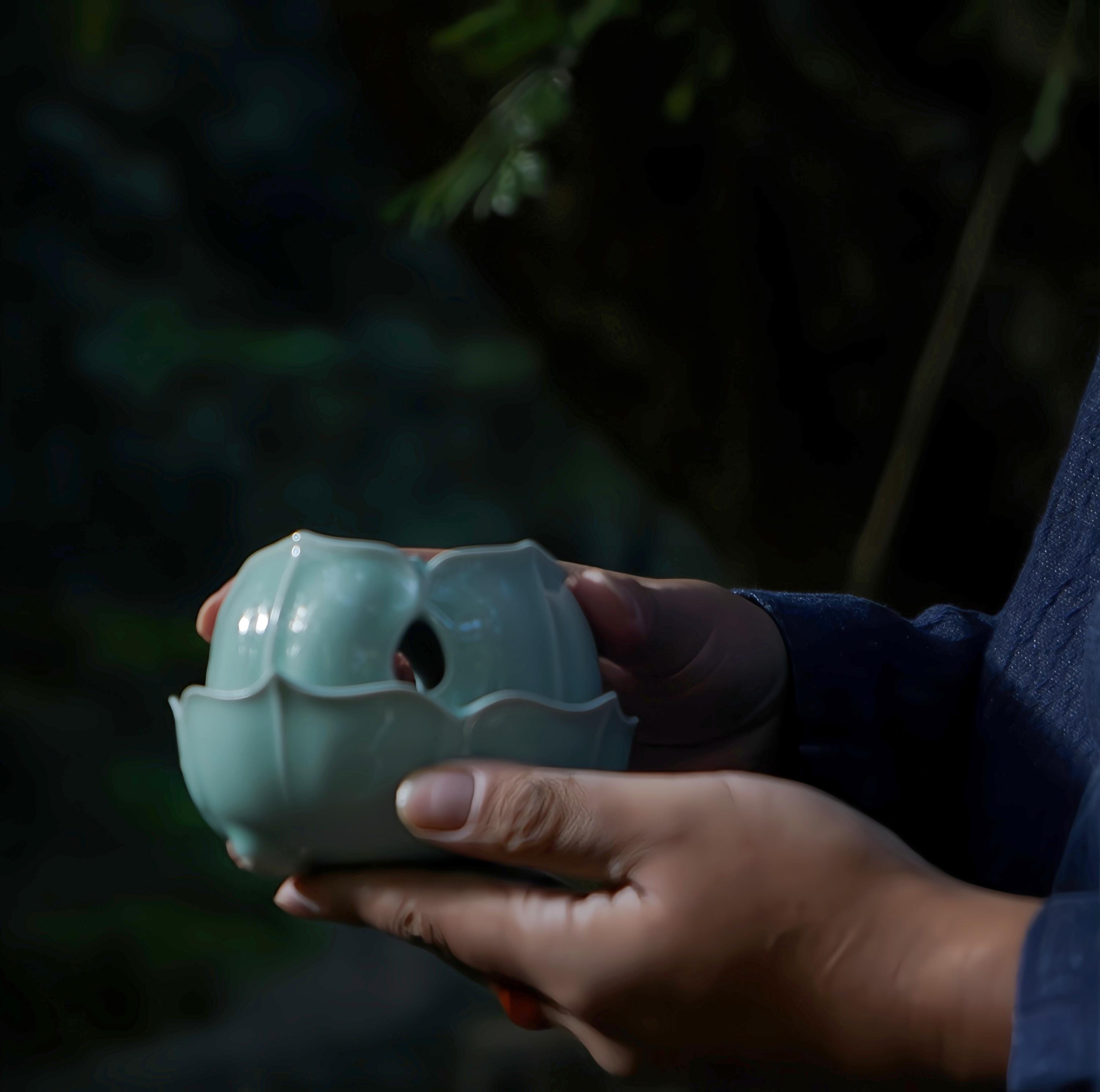 This lotus-shaped incense burner is crafted in Longquan celadon, a traditional ceramic art with a soft jade-green glaze. The lotus symbolizes purity, renewal, and inner peace — making this piece more than decor, but a quiet reminder of balance in daily life.