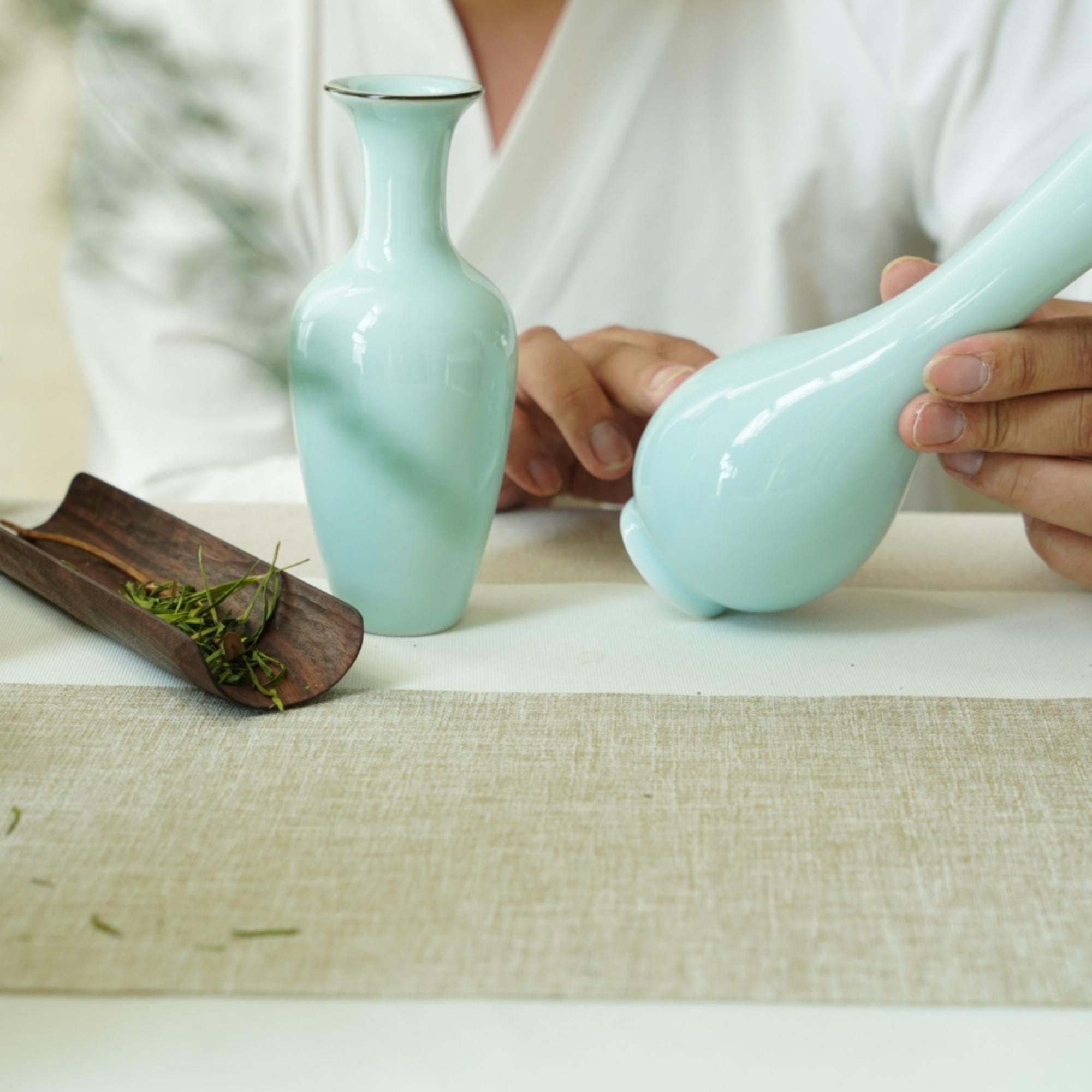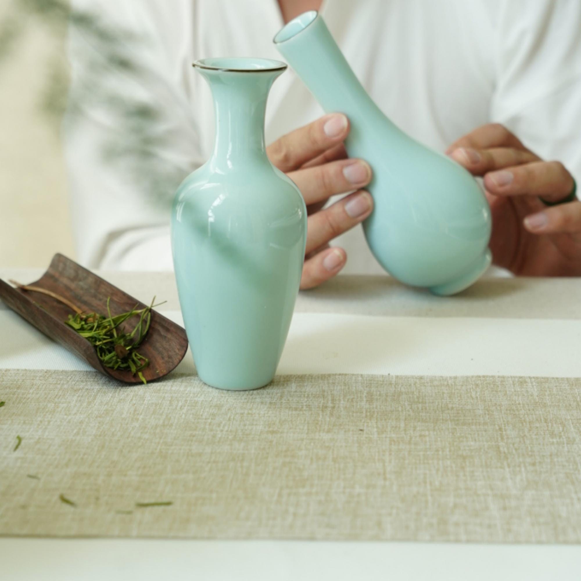These vases are rooted in the Longquan celadon tradition, a ceramic craft dating back to the Song Dynasty. The jade-like glaze and wabi-sabi asymmetry symbolize harmony, imperfection, and timeless beauty.